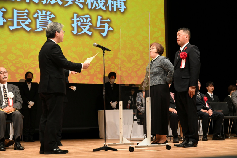 全国優良畜産経営管理技術発表会で発表するイソシンファーム社長(4面)